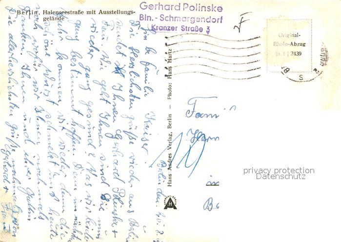 72941968 alte Postkarte BERLIN CITY Halenseestrasse mit Ausstellungsgelaende Turm postalisch gelaufen Erhaltung siehe scans [FriedD77] KatCode: 11110011000000