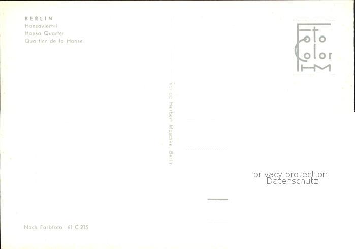 72126835 BERLIN CITY Hansaviertel postalisch nicht gelaufen Erhaltung siehe scans KatCode: 11110011000000