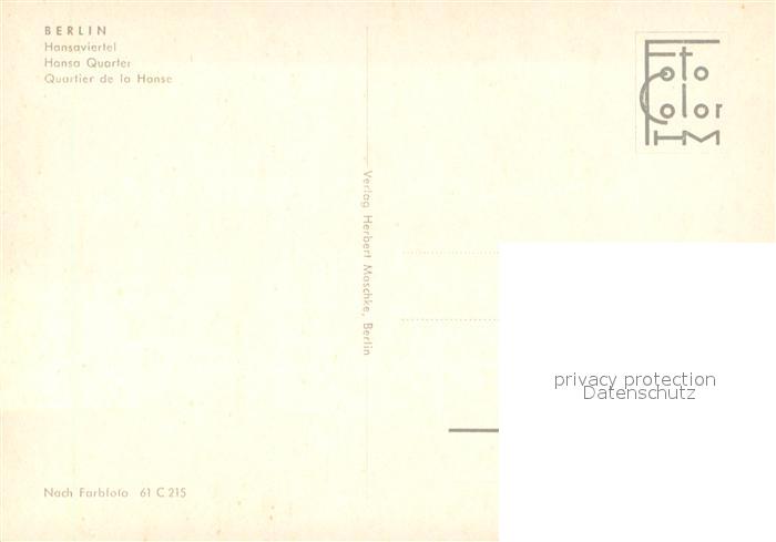 73656188 BERLIN CITY Hansaviertel postalisch nicht gelaufen Erhaltung siehe scans [WerneD78] Wern Katcode 11110011000000