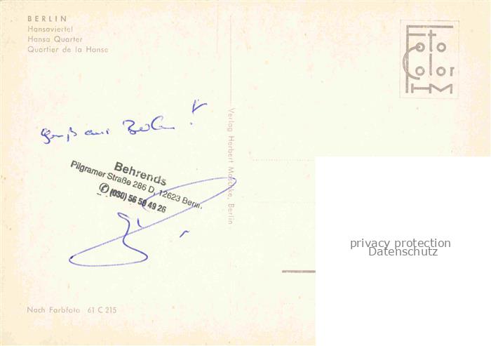 74037696 BERLIN CITY Hansaviertel postalisch nicht gelaufen Erhaltung siehe scans [FriedD77] KatCode: 11110011000000