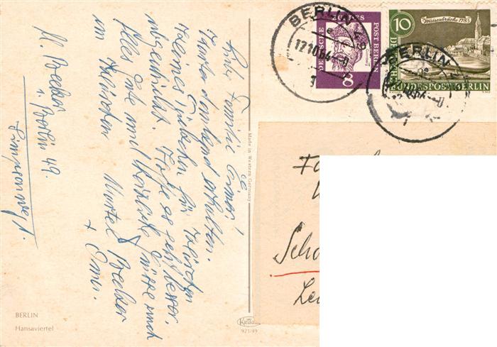73915165 BERLIN CITY Hansaviertel postalisch gelaufen Erhaltung siehe scans [WerneD78] alte Postkarte Wern Katcode 11110011000000