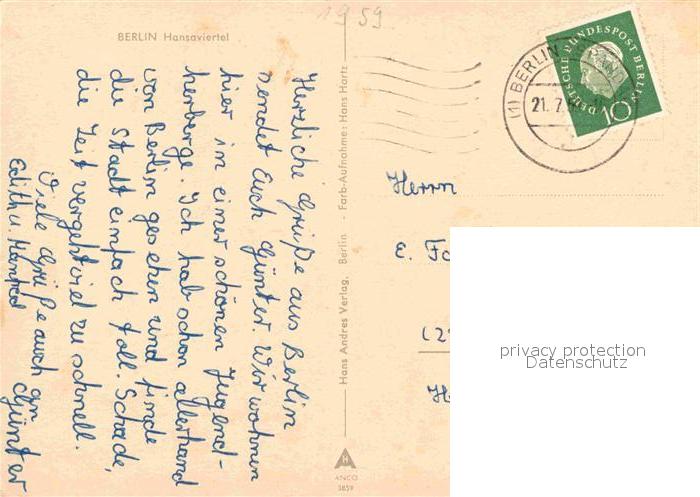 72890982 alte Postkarte BERLIN CITY Hansaviertel postalisch gelaufen Erhaltung siehe scans [WerneD78] KatCode: 11110011000000