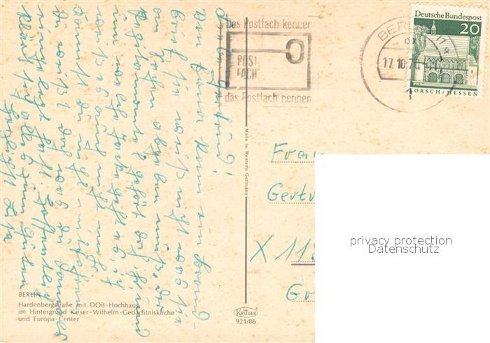73763939 BERLIN CITY Hardenbergstrasse mit DOB Hochhaus postalisch gelaufen Erhaltung siehe scans [FriedD77] alte Postkarte Frie Katcode 11110011000000
