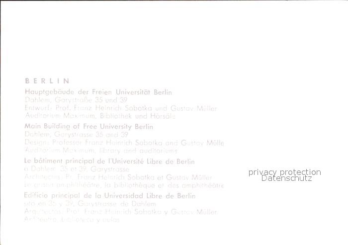 72327136 BERLIN CITY Hauptgebaeude Freien Universtitaet Berlin postalisch nicht gelaufen Erhaltung siehe scans KatCode: 11110011000000