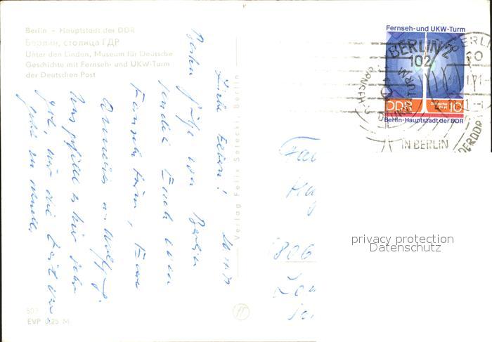 72407065 alte Postkarte BERLIN CITY Hauptstadt der DDR unter den Linden Museum fuer deutsche Geschichte mit Fernseh und UKW Turm der deutschen Post postalisch gelaufen Erhaltung siehe scans KatCode: 11110011000000