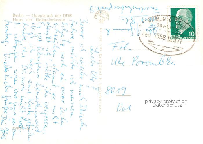 72938361 alte Postkarte BERLIN CITY Haus der Elektroindustrie postalisch gelaufen Bahnpost Erhaltung siehe scans [NatalD47] KatCode: 11110011000000