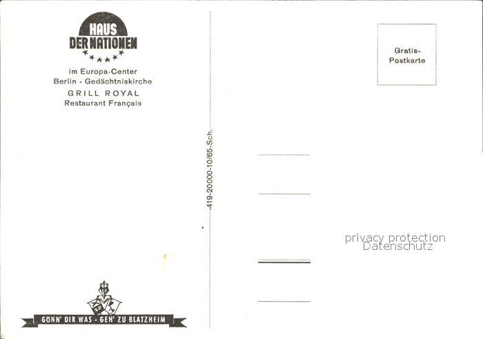 72090547 BERLIN CITY Haus der Nationen Europacenter Grill Royal postalisch nicht gelaufen Erhaltung siehe scans KatCode: 11110011000000