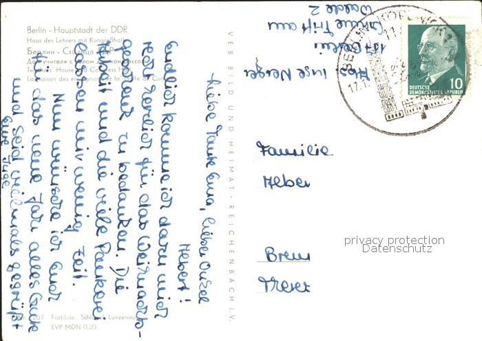 72286764 alte Postkarte BERLIN CITY Haus des Lehrers postalisch gelaufen Erhaltung siehe scans KatCode: 11110011000000
