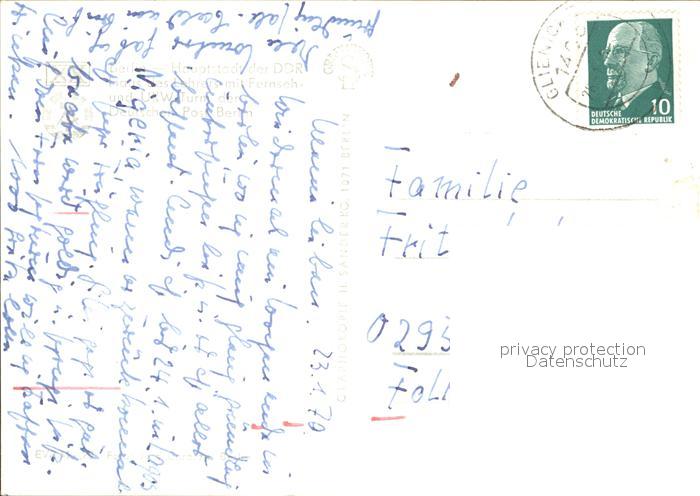72137581 alte Postkarte BERLIN CITY Haus des Lehrers Fernsehturm postalisch gelaufen Erhaltung siehe scans KatCode: 11110011000000