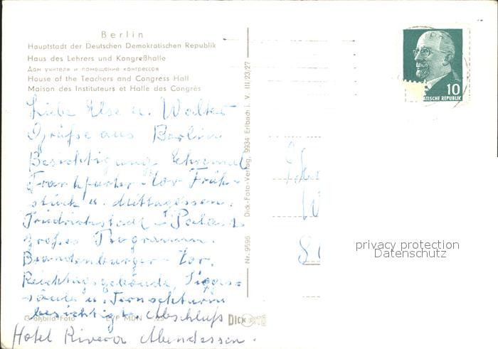 72357553 alte Postkarte BERLIN CITY Haus des Lehrers Kongresshalle postalisch gelaufen Erhaltung siehe scans KatCode: 11110011000000