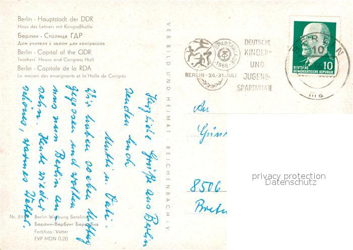 73128565 alte Postkarte BERLIN CITY Haus des Lehrers Kongresshalle postalisch gelaufen Erhaltung siehe scans [NatalD47] KatCode: 11110011000000
