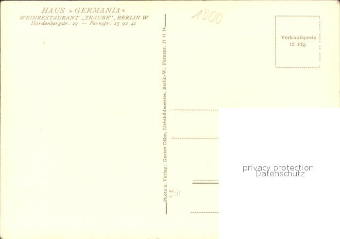 41790181 BERLIN CITY Haus Germania postalisch nicht gelaufen Erhaltung siehe scans Alte Ansichtskarte Postkarte Nata Katcode 11110011000000