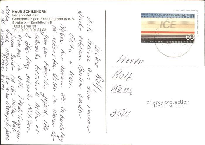 71926708 alte Postkarte BERLIN CITY Haus Schildhorn Hotel postalisch gelaufen Erhaltung siehe scans KatCode: 11110011000000