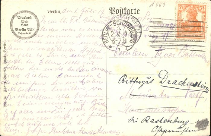 41221558 BERLIN CITY Haus Trarbach postalisch gelaufen gute Erhaltung Alte Ansichtskarte Postkarte alte Postkarte hz_U Katcode 11110011000000