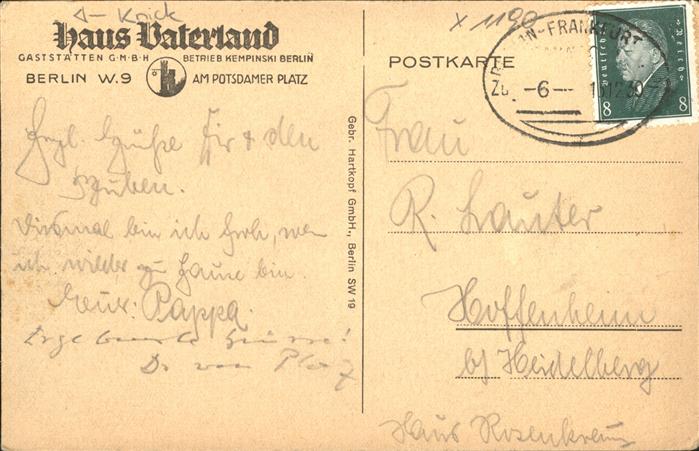 41332272 BERLIN CITY Haus Vaterland Restaurant Rheinterrasse postalisch gelaufen Erhaltung mit Maengel Alte Ansichtskarte Postkarte alte Postkarte hz_L Katcode 11110011000000