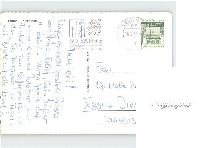 72362129 alte Postkarte BERLIN CITY Hilton Hotel postalisch gelaufen Erhaltung siehe scans KatCode: 11110011000000