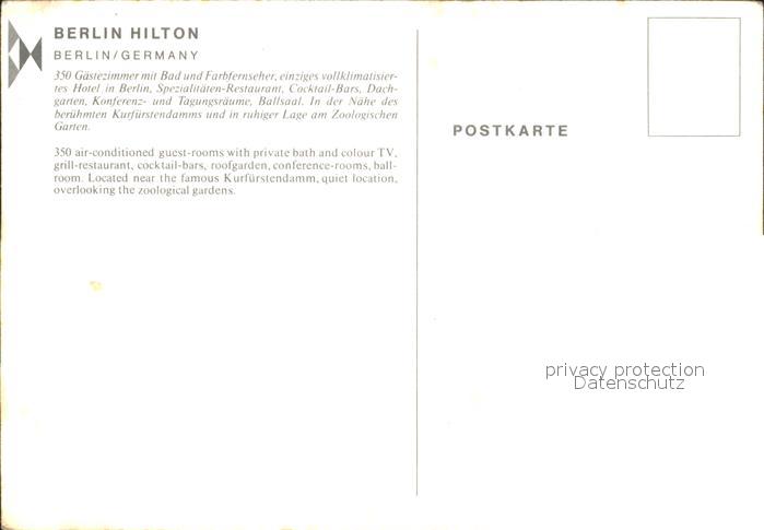 72251620 BERLIN CITY Hilton Hotel postalisch nicht gelaufen Erhaltung siehe scans KatCode: 11110011000000