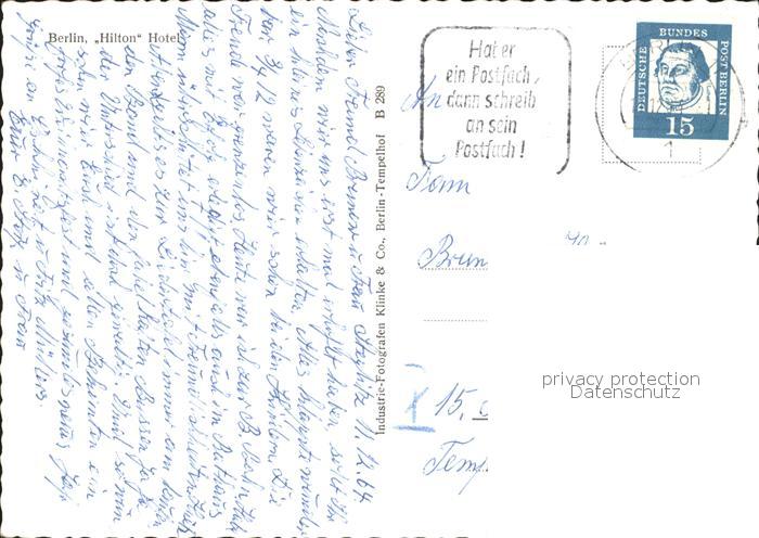 72117056 alte Postkarte BERLIN CITY Hilton Hotel postalisch gelaufen Erhaltung siehe scans KatCode: 11110011000000