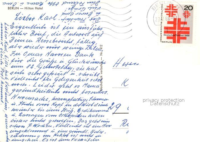 73021617 alte Postkarte BERLIN CITY Hilton Hotel postalisch gelaufen Erhaltung siehe scans [WerneD78] KatCode: 11110011000000