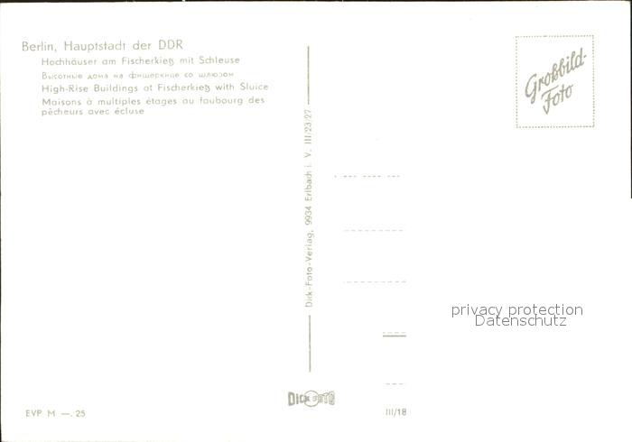 72008501 BERLIN CITY Hochhaeuser am Fischerkietz mit Schleuse postalisch nicht gelaufen KatCode: 11110011000000