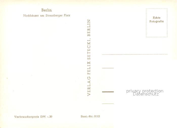 43371880 BERLIN CITY Hochhaeuser am Strausberger Platz postalisch nicht gelaufen Erhaltung siehe scans [FriedD77] Frie Katcode 11110011000000