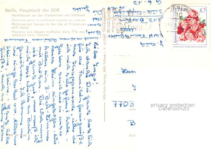73084198 alte Postkarte BERLIN CITY Hochhaeuser Fischerinsel Schleuse postalisch gelaufen Erhaltung siehe scans [KathaD81] KatCode: 11110011000000