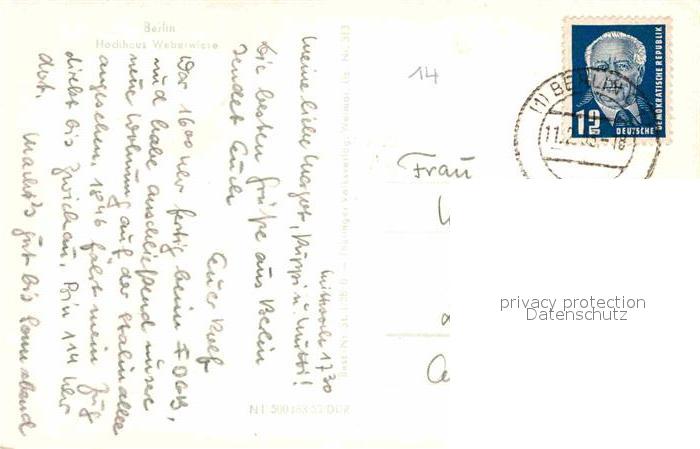 72895694 alte Postkarte BERLIN CITY Hochhaus Weberwiese postalisch gelaufen Erhaltung siehe scans [FriedD77] KatCode: 11110011000000
