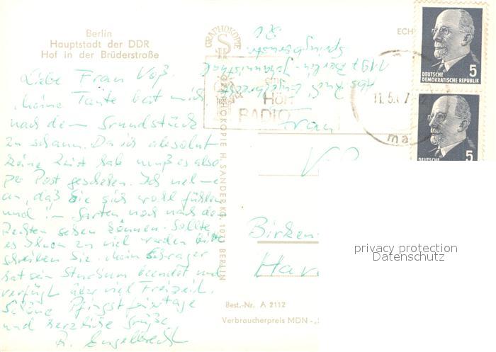 73032735 alte Postkarte BERLIN CITY Hof Bruederstrasse postalisch gelaufen Erhaltung siehe scans [KathaD81] KatCode: 11110011000000