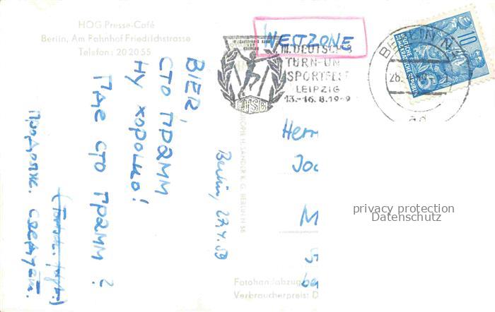 74150412 alte Postkarte BERLIN CITY HOG Presse-Café Gastraum postalisch gelaufen Erhaltung siehe scans [FriedD77] KatCode: 11110011000000