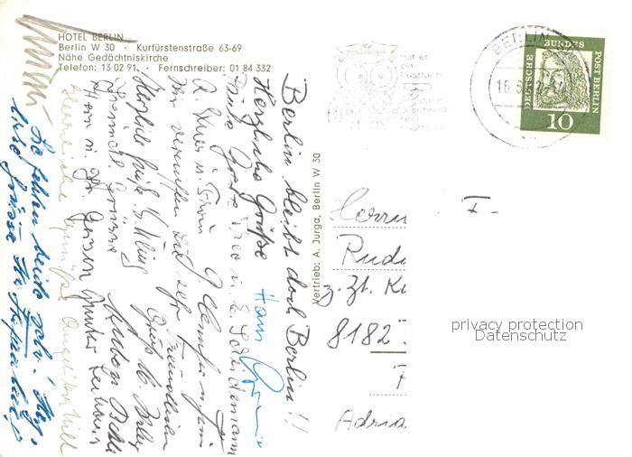 73832050 BERLIN CITY Hotel Berlin postalisch gelaufen Erhaltung siehe scans [WerneD78] alte Postkarte Wern Katcode 11110011000000