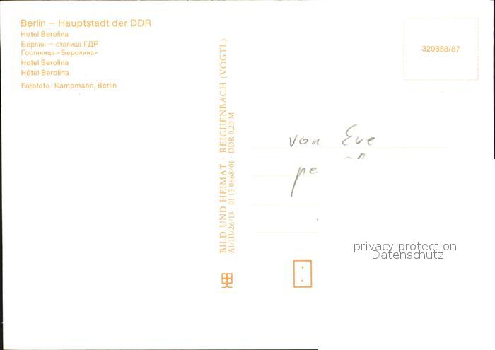 72608708 BERLIN CITY Hotel Berolina postalisch nicht gelaufen Erhaltung siehe scans [LiesaD40] KatCode: 11110011000000