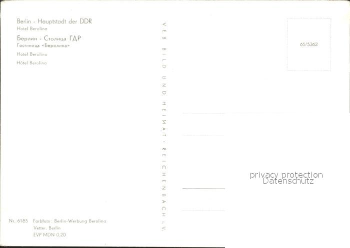72120532 BERLIN CITY Hotel Berolina postalisch nicht gelaufen KatCode: 11110011000000