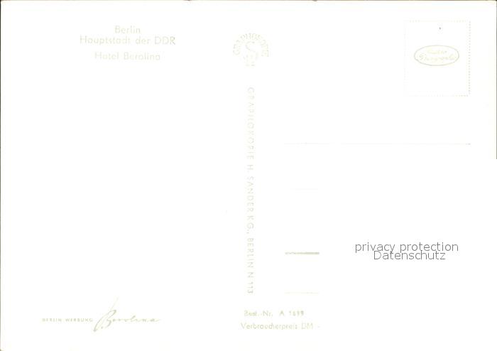 71998596 BERLIN CITY Hotel Berolina postalisch nicht gelaufen Erhaltung siehe scans KatCode: 11110011000000