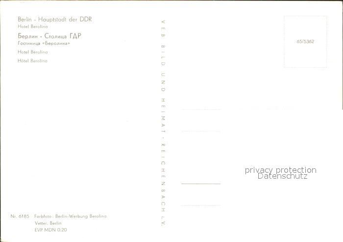 71866008 BERLIN CITY Hotel Berolina postalisch nicht gelaufen Erhaltung siehe scans KatCode: 11110011000000
