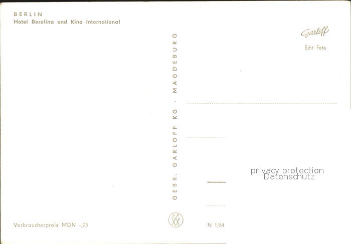 72076993 BERLIN CITY Hotel Berolina Kino International postalisch nicht gelaufen KatCode: 11110011000000