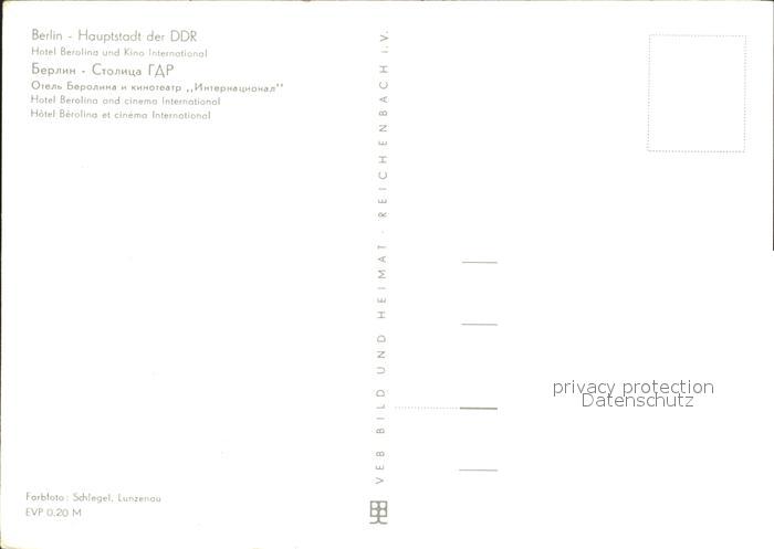 72325067 BERLIN CITY Hotel Berolina und Kino International postalisch nicht gelaufen Erhaltung siehe scans KatCode: 11110011000000