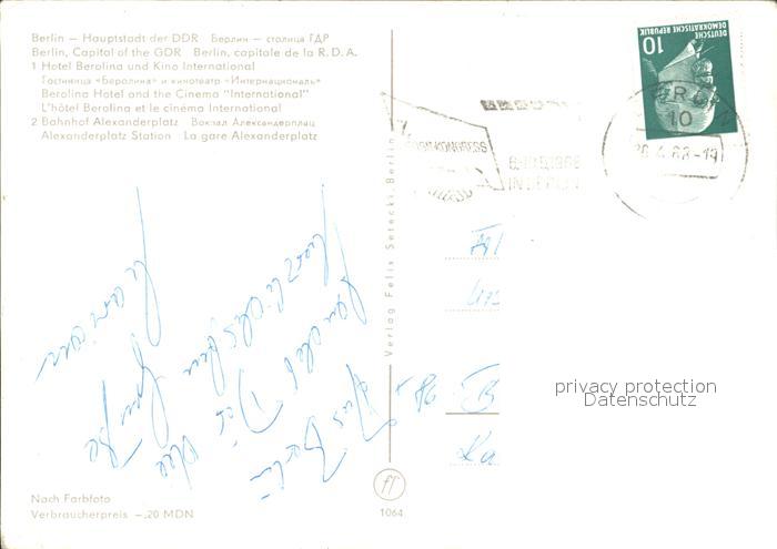 72036486 alte Postkarte BERLIN CITY Hotel Berolina und Kino International Bahnhof Alexanderplatz postalisch gelaufen Erhaltung siehe scans KatCode: 11110011000000