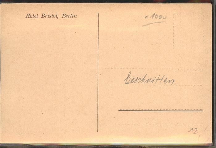 41382672 BERLIN CITY Hotel Bristol postalisch nicht gelaufen Erhaltung mit Maengel Alte Ansichtskarte Postkarte Stef Katcode 11110011000000