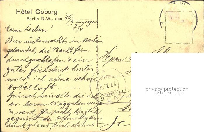 41689448 alte Postkarte BERLIN CITY Hotel Coburg postalisch gelaufen Erhaltung siehe scans KatCode: 11110011000000