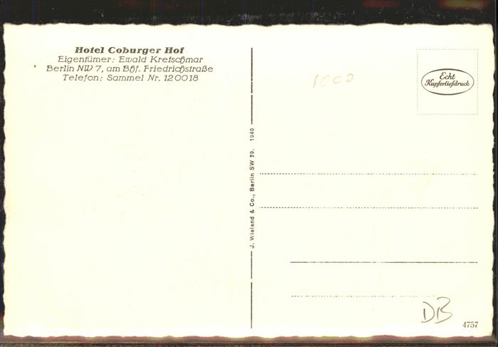 41400669 BERLIN CITY Hotel Coburger Hof Zierhof Skulptur postalisch nicht gelaufen Alte Ansichtskarte Postkarte hz_F Katcode 11110011000000