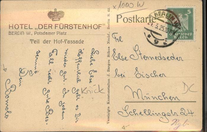 41038813 BERLIN CITY Hotel Der Fuerstenhof postalisch gelaufen Alte Ansichtskarte Postkarte alte Postkarte Chri Katcode 11110011000000