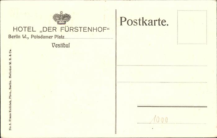 41221318 BERLIN CITY Hotel Fuerstenhof Vestibul postalisch nicht gelaufen Alte Ansichtskarte Postkarte hz_U Katcode 11110011000000