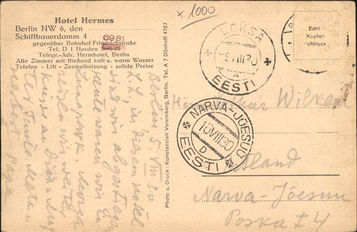 41241319 BERLIN CITY Hotel Hermes postalisch gelaufen gute Erhaltung Alte Ansichtskarte Postkarte alte Postkarte Chri Katcode 11110011000000