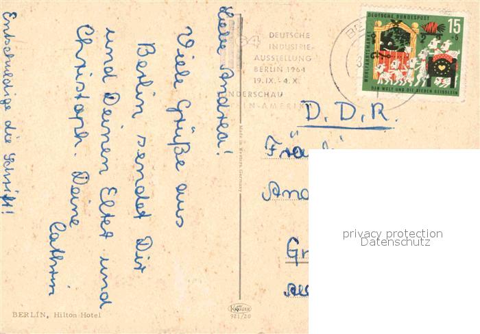 72860875 alte Postkarte BERLIN CITY Hotel Hilton postalisch gelaufen Erhaltung siehe scans [AndreD76] KatCode: 11110011000000