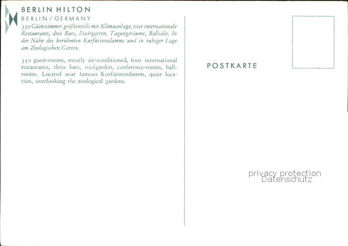 72572773 BERLIN CITY Hotel Hilton postalisch nicht gelaufen Erhaltung siehe scans [AndreD76] KatCode: 11110011000000