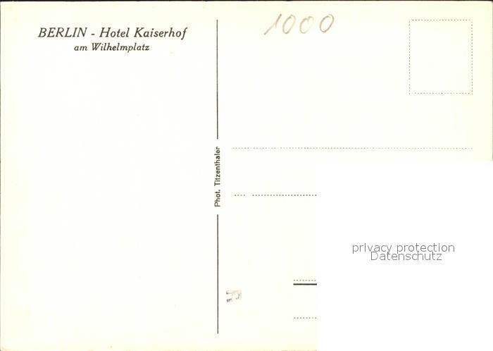 41790180 BERLIN CITY Hotel Kaiserhof Wilhelmplatz postalisch nicht gelaufen Erhaltung siehe scans Alte Ansichtskarte Postkarte Nata Katcode 11110011000000