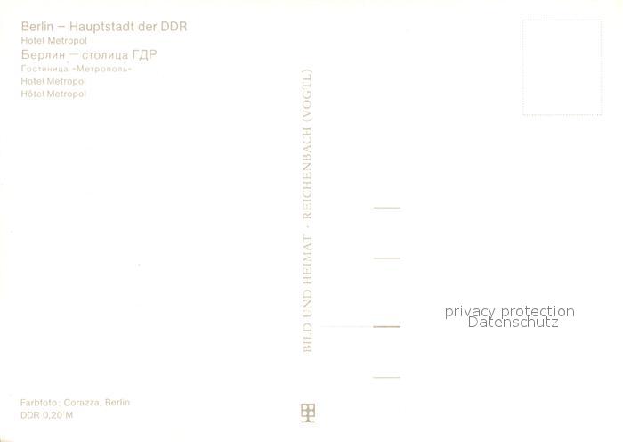 73725964 BERLIN CITY Hotel Metropol Hauptstadt der DDR postalisch nicht gelaufen Erhaltung siehe scans [FriedD77] Frie Katcode 11110011000000