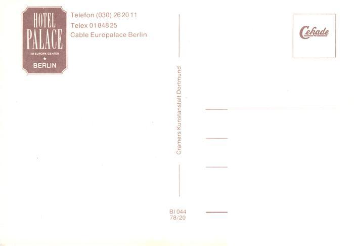 73942364 BERLIN CITY Hotel Palace Restaurant postalisch nicht gelaufen Erhaltung siehe scans [FriedD77] Frie Katcode 11110011000000