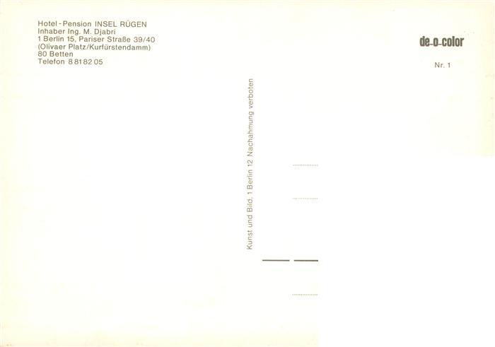 73925465 BERLIN CITY Hotel Pension Insel Ruegen Fremdenzimmer postalisch nicht gelaufen Erhaltung siehe scans [FriedD77] Frie Katcode 11110011000000
