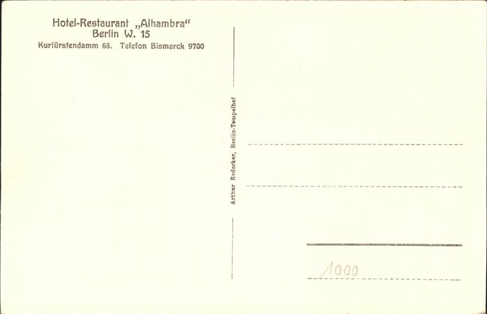 41221533 BERLIN CITY Hotel-Restaurant Alhambra postalisch nicht gelaufen gute Erhaltung Alte Ansichtskarte Postkarte hz_U Katcode 11110011000000